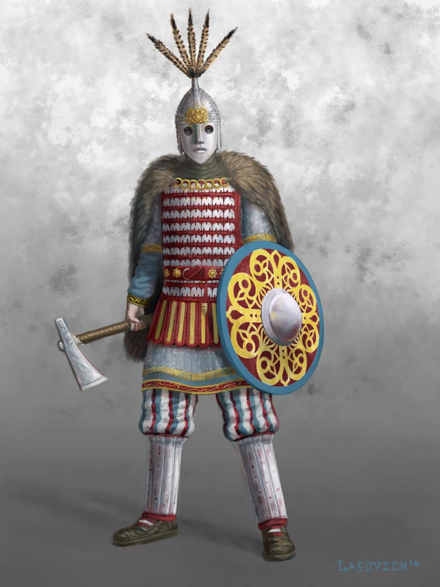 View fullsize December 1, 2016 There was a character design contest that was themed Gladiators. I chose to do a Byzantine Emperor's Varangian Guard Champion. I know the games were out of style by this time, but I thought it would be fun to design.