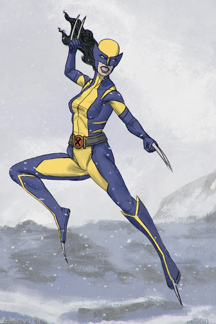 An X-23 style exploration pic. Just messing around with a more comic look. I am still undecided if there is to much of a clash between the more textured painted background, and the figure.